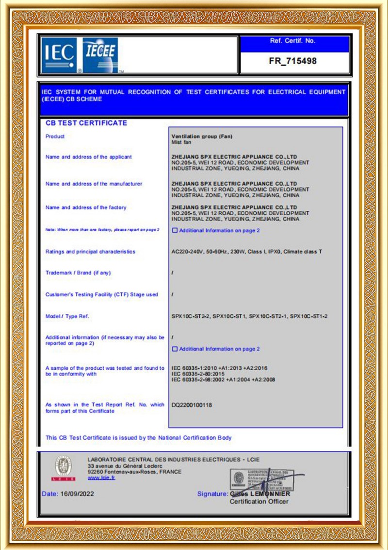 SPX a obtenu la certification obligatoire chinoise (CCC), la certification CE et la certification standard ISO9001, ainsi que différentes certifications pour différents produits correspondant aux besoins des clients.